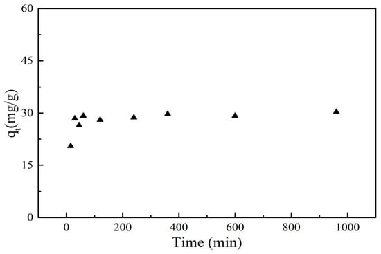The study of adsorption kinetics for PRO onto GO/Fe3O4 was important for understanding the rate and mechanism of the adsorption process. The effect of contact time on adsorption was depicted in Figure 7. It can be seen that the reaction was very initially rapid and the adsorption capacity of PRO increased dramatically with time increasing. There were large surface area and a number of active sites on the surface of GO/Fe3O4, which was good for the adsorption process. The high concentration of PRO in an aqueous solution was also attributed to the rapid adsorption. After 60 min, the adsorption rate gradually decreased. The reason for this trend was that the adsorption sites on the surface of the material were gradually occupied by PRO and the availability of the active sites was reduced, resulting in a slow adsorption rate. Moreover, the adsorbed PRO on the surface of GO/Fe3O4 may have also hindered the adsorption of PRO in the aqueous solution due to steric hindrance. With time increasing, the adsorption of PRO onto GO/Fe3O4 was not significantly affected by the contact time and the adsorption tended to be in a stable state.