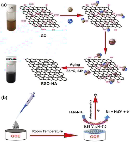 - Gao, F.; Wang, Q.X.; Gao, N.N.; Yang, Y.Z.; Cai, F.X.; Yamane, M.; Gao, F.; Tanaka, H. Hydroxyapatite/chemically reduced graphene oxide composite: Environment-friendly synthesis and high-performance electrochemical sensing for hydrazine. Biosens. Bioelectron. 2017, 97, 238–245. [Google Scholar] [CrossRef]