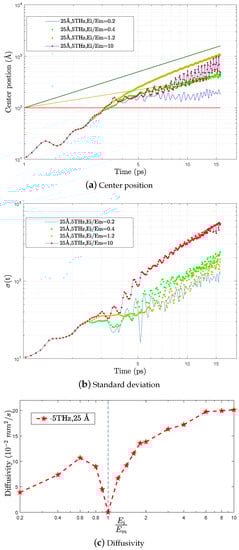 while in the diffusive regime [], it is given by the diffusivity (Figure 9) as