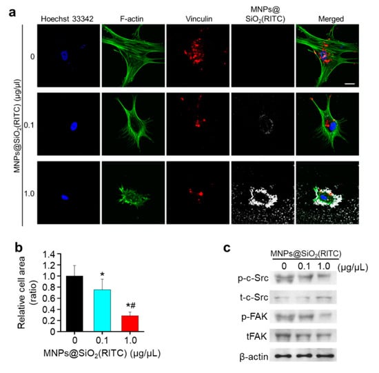 Chicago/Turabian StyleShin, Tae Hwan, Da Yeon Lee, Abdurazak Aman Ketebo, Seungah Lee, Balachandran Manavalan, Shaherin Basith, Chanyoung Ahn, Seong Ho Kang, Sungsu Park, and Gwang Lee. 2019. "Silica-Coated Magnetic Nanoparticles Decrease Human Bone Marrow-Derived Mesenchymal Stem Cell Migratory Activity by Reducing Membrane Fluidity and Impairing Focal Adhesion" Nanomaterials 9, no. 10: 1475. https://doi.org/10.3390/nano9101475