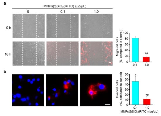 3.5. Reduction in Migratory Activity of hBM-MSCs after MNPs@SiO2(RITC) Treatment
