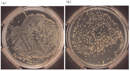 The sterilized sample was placed in a centrifuge tube containing 107 CFU/mL bacterial suspension of 4 mL and incubated at 37 °C for 24 h. After incubation, the specimen was taken out and the bacterial suspension was fully mixed by a mixer. Then 100 μL of the mixed bacterial suspension were inoculated in Luria‒Bertani (LB) agar plates and cultivated at 37 °C for 24 h. Finally, the bacterial colonies grown were counted by an automatic colony detection instrument (Sphere Flash, Barcelona, Spain). The antimicrobial rate (P) was obtained by Equation (1) [40]: