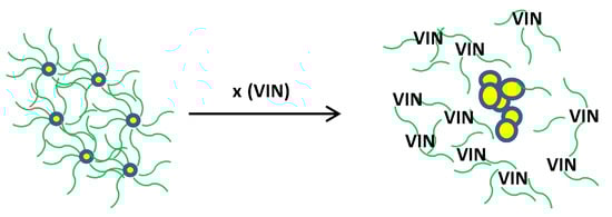 is an individual AgNP, the bigger circles are aggregated AgNPs formed after the addition of VIN, and x represents numerous molecules.