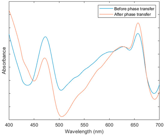UV/Vis absorption spectrum of AgNSs before/after phase transfer.