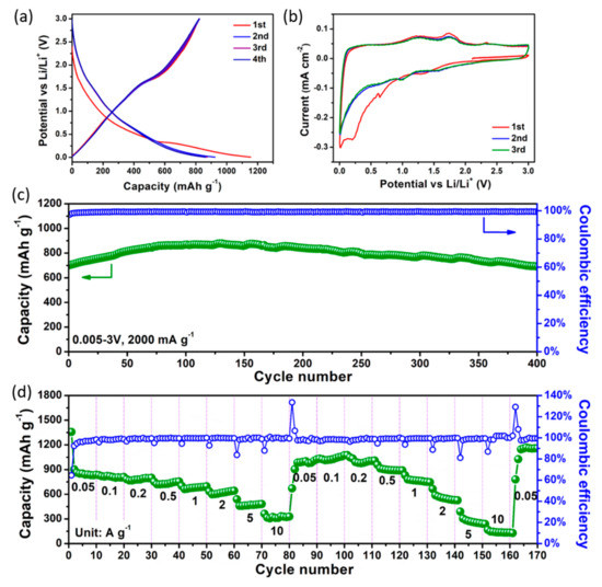 - Zeng, L.; Zheng, C.; Xi, J.; Fei, H.; Wei, M. Composites of V2O3-ordered mesoporous carbon as anode materials for lithium-ion batteries. Carbon 2013, 62, 382–388. [Google Scholar] [CrossRef]