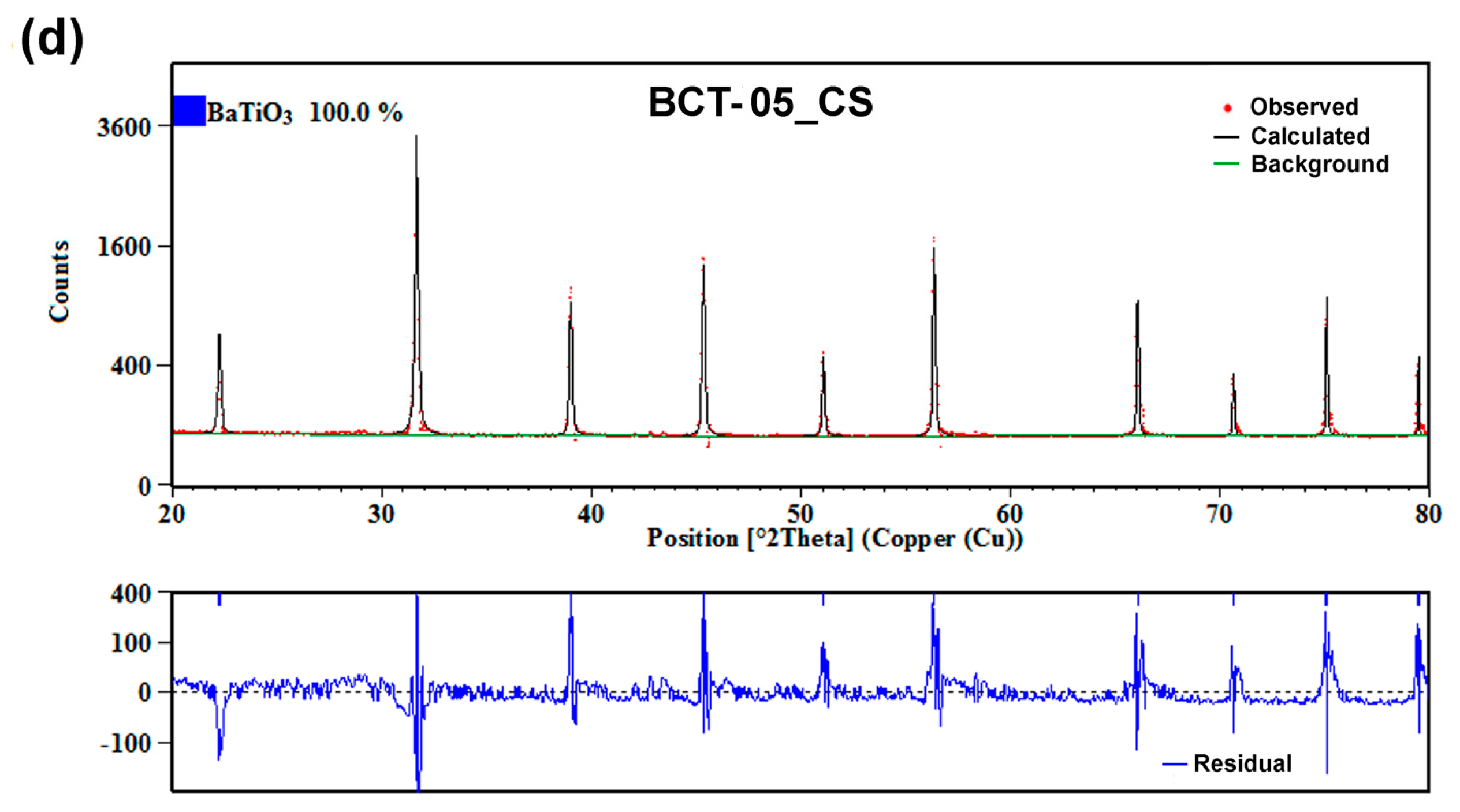 | Phase composition | BCTss-100% | BCTss-100% | BCTss-100% | BCTss-98.2% BT2-1.1% C-0.7% | |