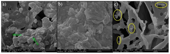 Before the plugging test for low permeability reservoir, low permeability filter cakes (LPFC) were prepared to simulate the low permeability shale formation. The specific preparation process of low permeability filter cakes (LPFC) was depicted in Supplementary Materials 2.5.1. According to Darcy’s law, the average permeability (K0) was about 4.69 × 10−4 mD, indicating the low permeability of LPFC was consistent with the permeability of shale formation (Table 1). The pores and hole sizes of prepared LPFC approximately ranged from a hundred nanometers to a few micrometers investigated by ESEM (Figure 6a), which were attributed to nano- or micro-scale pores and holes. The above results indicated that our prepared LPFC was able to be simulated as the low permeability formation for plugging performance evaluation of SiO2-g-SPMA.