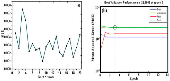 Figure 12b represents MSE versus the number of the epoch curve. The results indicate that there was not a significant change in the performance of the method after epoch 3 for the proposed ANN module.