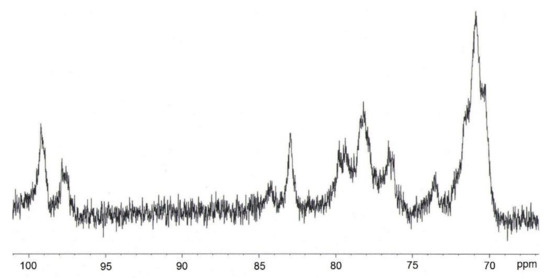 13C nuclear magnetic resonance (NMR) spectra of CN were recorded at 60 °C on a Bruker AM 400 spectrometer (Bruker, Germany) operating at 100.61 MHz. The chemical shifts of signals were referenced to DMSO-d6 as an internal standard.