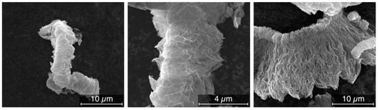 De-agglomerated hierarchical thermally reduced graphene oxide was supplied by Cabot Corporation. An overview of the available preparation methods for the different types of graphene can be found elsewhere [37]. In Figure 1 SEM pictures of the material in bulk form can be seen. From these pictures, we can see that despite the various production steps the material still contains a significant level of de-agglomeration.