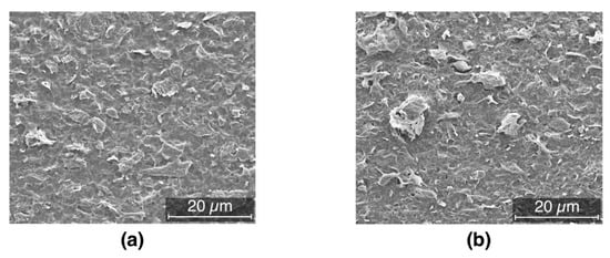 SEM images after etching, showing (a) isolate rare agglomerates (1 wt.% filler) or (b) larger structures (2.5 wt.% filler).