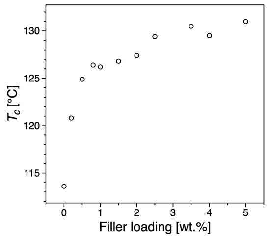 Crystallization temperature, Tc, as a function of the filler loading.