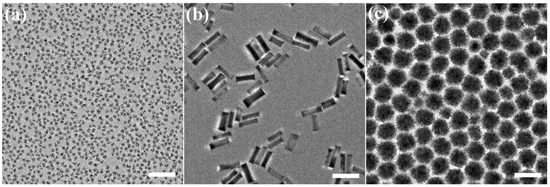 - Peng, X.G.; Manna, L.; Yang, P.D.; Wichham, J.; Scher, E.; Kadavanich, A.; Alivisatos, A.P. Shape Control of CdSe Nanocrystals. Nature 2000, 404, 59–61. [Google Scholar] [CrossRef]