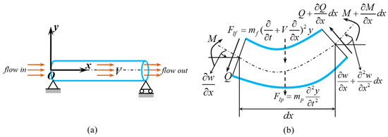- Paidoussis, M.P.; Laithie, B.E. Dynamics of Timoshenko beams conveying fluid. J. Mech. Eng. Sci. 1976, 18, 210–220. [Google Scholar] [CrossRef]
