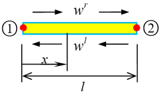 The one-dimensional wave motion in SWCNT (Figure 2) includes left- and right-traveling waves and . For a SWCNT element with length l, Equation (14) holds the following form if node 1 was chosen as origin [45]: