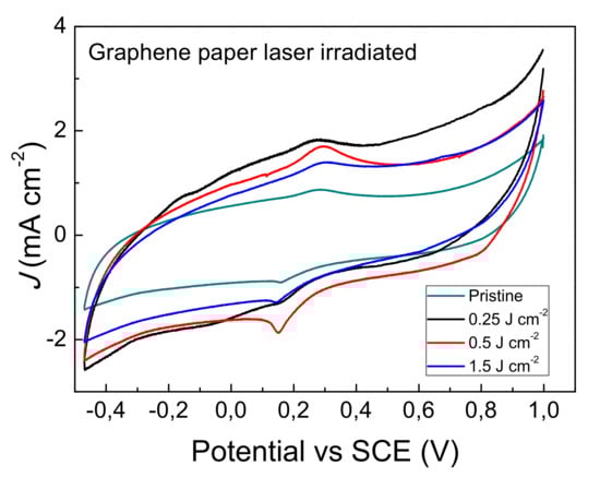 3.2. Electrochemical Characterization of Graphene Paper Modified by Laser Irradiation