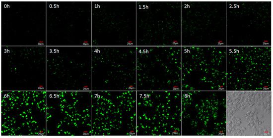 CLSM images of HeLa cells after incubation with ENP (10 μg/mL) for different times. The last one is the bright field image of HeLa cells, corresponding to CLSM images with incubation time of 2 h.