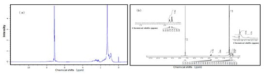 1H NMR spectra of (a) asphaltenes and (b) ASAS.