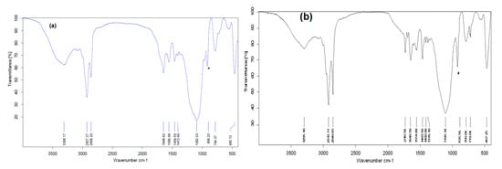 The FTIR spectra of HSNP-1 and HSNP-2 are presented in Figure 3a,b, respectively.