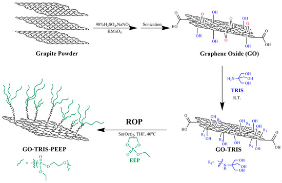 2.5. Preparation of PEEP-Grafted Graphene Sheets (GO-TRIS-PEEP)