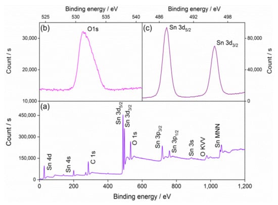 - Stranick, M.A.; Moskwa, A. SnO2 by XPS. Surf. Sci. Spectra 1993, 2, 50–54. [Google Scholar] [CrossRef]