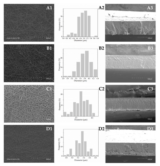 | Formulation | Viscosity (cP) | Conductivity (µS/cm) | Surface Tension (mN/m) | Fiber Diameter (µm) | Film Thickness (mm) |