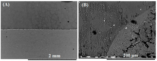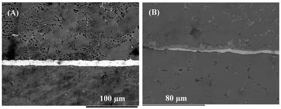 (A) SEM micrograph of Mg/Al bonded for 10 min using Cu/Al2O3 interlayer. (B) Detailed view of the interface.