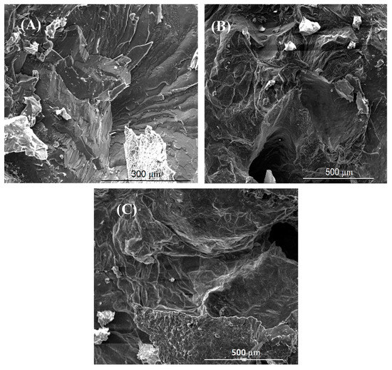 SEM images of the fracture surfaces for joints bonded with Cu/Al2O3 for (A) 2 min, (B) 5 min and (C) 10 min.