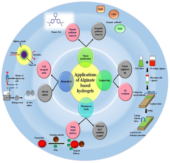 Various applied applications of alginate based hydrogels [135]. Reprinted with permission from Ref. [135]. Copyright Elsevier, 2018.