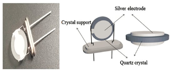 Photograph and structure of the quartz crystal microbalance (QCM) sensor. Reproduced with permission from [86], Copyright Elsevier B.V., 2017.