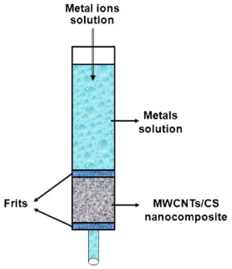 - Salam, M.A.; Makki, M.S.I.; Abdelaal, M.Y.A. Preparation and characterization of multi-walled carbon nanotubes/chitosan nanocomposite and its application for the removal of heavy metals from aqueous solution. J. Alloys Compd. 2011, 509, 2582–2587. [Google Scholar] [CrossRef]