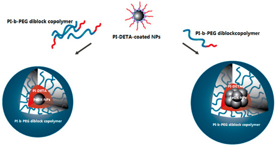 Schematic Representation of the PI-b-PEG Diblock Copolymer Encapsulation of Single or Multiple NPs. Adapted with permission from [150]. Copyright American Chemical Society, 2014.