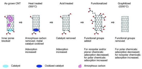 The general trend for the changes of CNT adsorption properties after different treatments. Reprinted with permission from [23]. Copyright (2008) American Chemical Society.