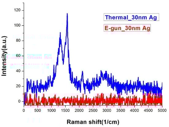 Raman spectra of silver films deposited by thermal and E-gun evaporation. The exposure time was 10 s.