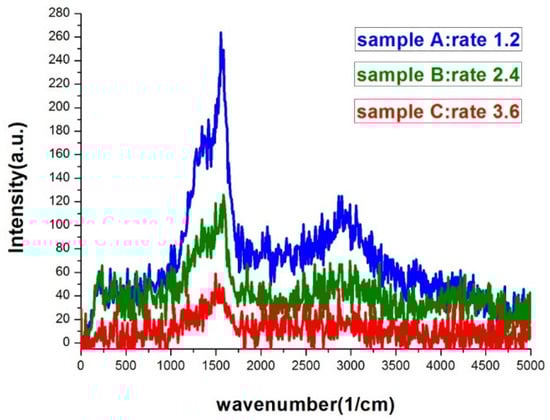 Raman spectra of silver island films deposited with evaporation rates of 1.2, 2.4, and 3.6 Å/s. The exposure time was 20 s.