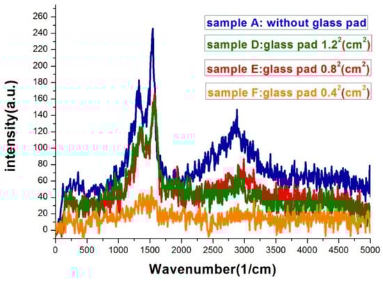 Raman spectra of silver island films with glass pads underneath during thermal evaporation. The evaporation rate was the same, 1.2 Å/s, for the four samples. The exposure time was 20 s.
