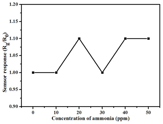 Sensor responses of TiO2 NPs to NH3 gas ranging from 10 to 50 ppm at room temperature.
