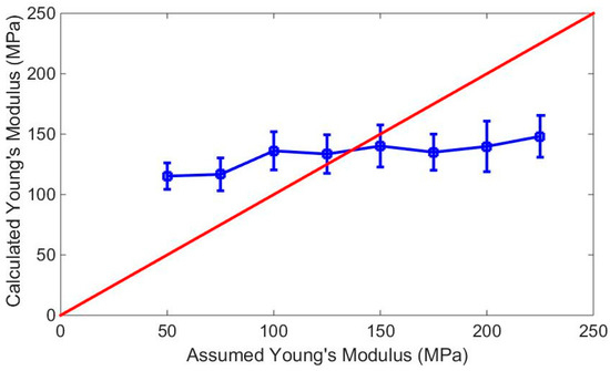 where represents the calculated Young’s modulus corresponding to the assumed Young’s modulus . is the calculated original height. From Equation (4), for each matrix jFsf, we obtained the calculated Young’s modulus matrix and the original height matrix .