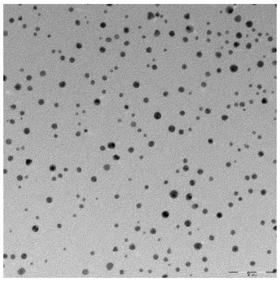 A transmission electron microscopy (TEM) micrograph of the AuNP-S-PEG-trastuzumab bioconjugate.