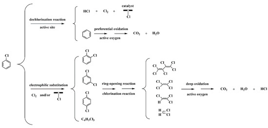 - Huang, H.; Gu, Y.; Zhao, J.; Wang, X. Catalytic combustion of chlorobenzene over VOx/CeO2 catalysts. J. Catal. 2015, 326, 54–68. [Google Scholar] [CrossRef]