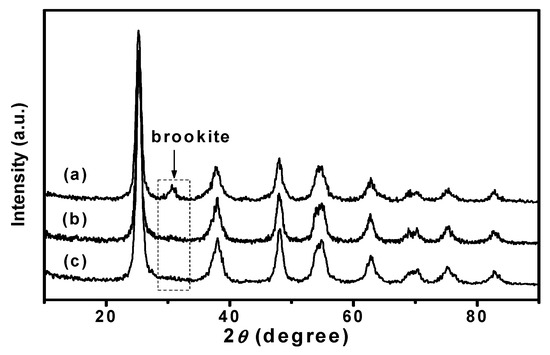 - Xu, H.; Zhang, L. Controllable One-Pot Synthesis and Enhanced Photocatalytic Activity of Mixed-Phase TiO2 Nanocrystals with Tunable Brookite/Rutile Ratios. J. Phys. Chem. C 2009, 113, 1785–1790. [Google Scholar] [CrossRef]