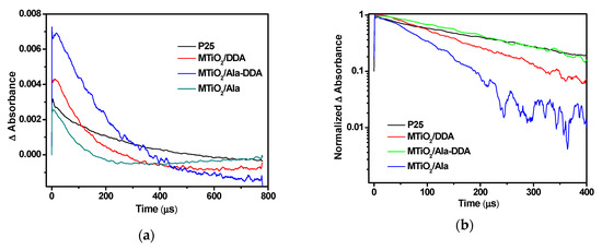 - Shen, S.; Wang, X.; Chen, T.; Feng, Z.; Li, C. Transfer of Photoinduced Electrons in Anatase–Rutile TiO2 Determined by Time-Resolved Mid-Infrared Spectroscopy. J. Phys. Chem. C 2014, 118, 12661–12668. [Google Scholar] [CrossRef]