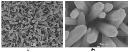 - Liu, B.; Zeng, H.C. Hydrothermal synthesis of ZnO nanorods in the diameter regime of 50 nm. J. Am. Chem. Soc. 2003, 125, 4430–4431. [Google Scholar] [CrossRef] [PubMed]