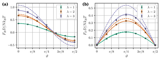where k and l are Cartesian indices, is the Kronecker delta, is the Dirac delta function, and is the strength of thermal fluctuations. In simulations, the dimensionless form of Equation (7) is used: