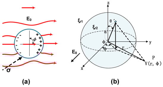 As shown in Figure 16, under E0 of 4 kV/mm, the surface charge potential of a C60 nanoparticle is 0.257 eV when the particle size is 300 nm. The TSC test result shows that the maximum trap level generated by C60 nanoparticles in CMIO is 0.718 eV. When the error of the model itself is excluded, the surface electric potential calculated according to this model is smaller than the trap value actually measured in the TSC test. This difference may be attributed to the following reasons:
