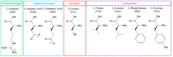 Figure 1. Chemical structure of the selected amino acids grouped according to the chemical characteristics of the side chain.