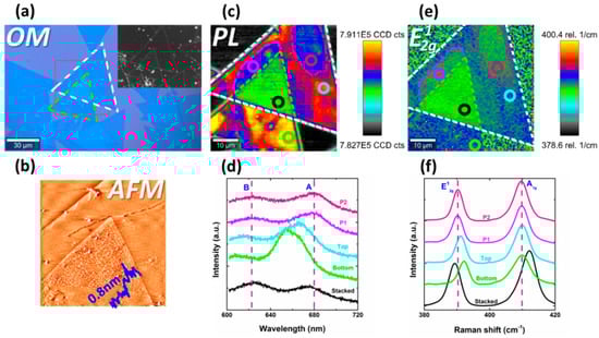 - Tonndorf, P.; Schmidt, R.; Bottger, P. Photoluminescence emission and Raman response of MoS2, MoSe2, and WSe2 nanolayers. Opt. Express 2013, 21, 4908–4916. [Google Scholar] [CrossRef]