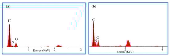 EDS spectra of samples: (a) for NC/GAP; (b) for NC/GAP/nano-LLM-105.