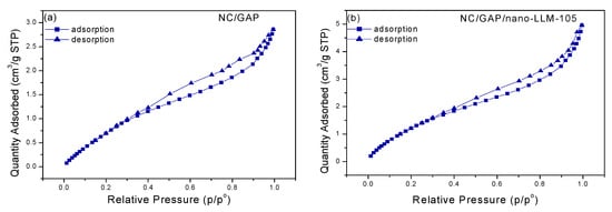 The BET data of samples: (a) NC/GAP and (b) NC/GAP/nano-LLM-105 nanofiber.
