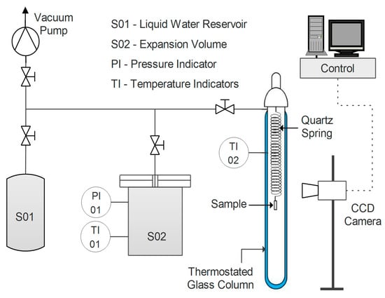 Layout of the quartz spring microbalance used to measure water vapor uptake.